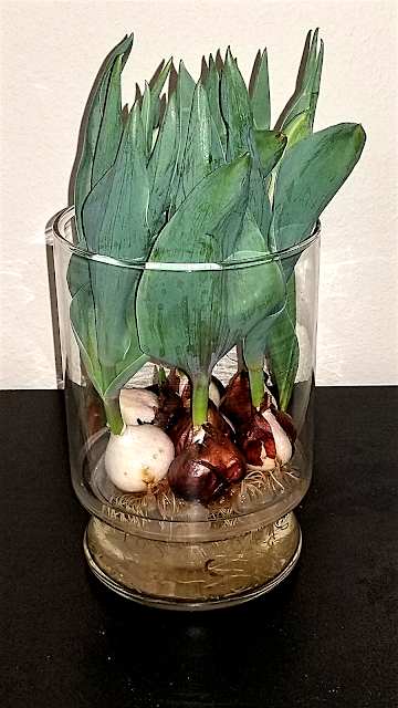 My last tulip plant lasted forever but I didn't have the patience for learning how to store the bulbs once the blooms died. These are in water and now that it's summer (or trying to be, anyway), I can get friends to help when I need to deal with saving this one. At least I remembered to spend the rest of my budgeted money on food while I was in the store. And I stayed on budget!